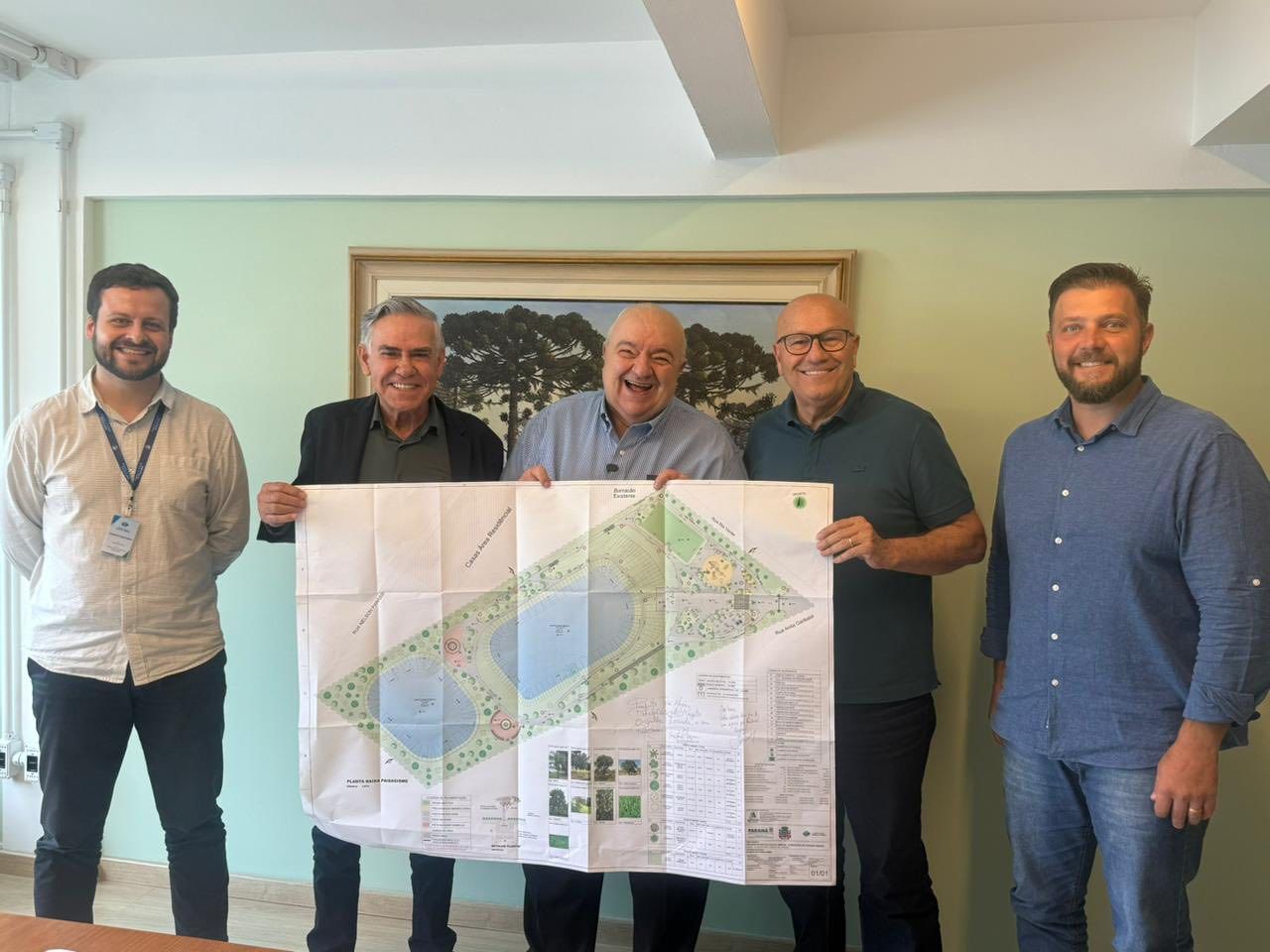 Nosso Governador Ratinho Júnior, nosso Deputado Estadual Romanelli, nosso Deputado Federal Toninho Wandscheer, e o Secretário do Desenvolvimento Sustentável Senhor Rafael Greca.